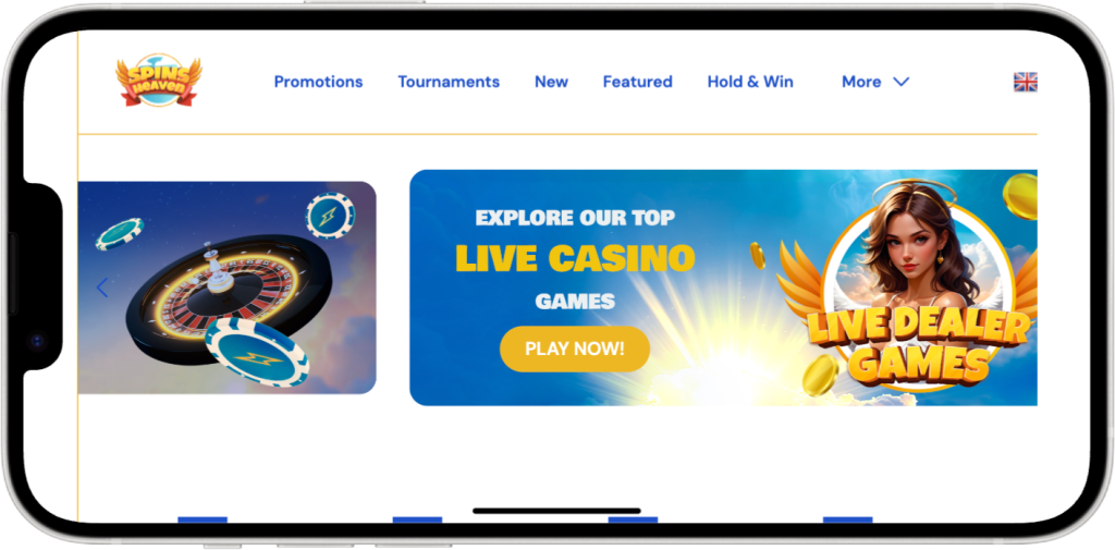 Spins Heaven casino offers a mobile-optimised web version that you can install directly on your device’s home screen. Players simply visit our Spins Heaven casino website and follow the on-screen prompt to “Add to Home Screen,” creating quick access that opens like an app. This version provides the full functionality of the casino: registration, payments, promotions, and gameplay, all without needing to download anything from Google Play or the App Store.